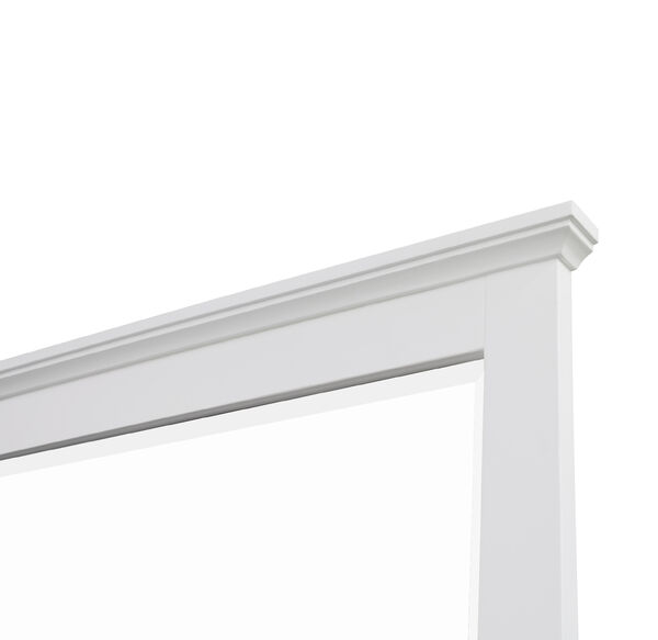 A mirror instantly brightens and spreads positive energy throughout a bedroom. Decorate your bedroom with this exquisitely crafted mirror to fill it with good vibes. The mirror features a wood frame made of sustainably solid acacia timber. The wood is known for its attractive looks, strength, shock-resistance, and durability. The mirror is made of annealed glass of the highest quality. This type of glass gives the mirror a long lifespan. The mirror can be hung on a wall or attached to a dresser. The mirror, which is designed in a coastal style, will smarten up your bedroom wonderfully. A white painted finish enables it to suit any decor style. The mirror is fully assembled, and it comes with a one-year warranty.