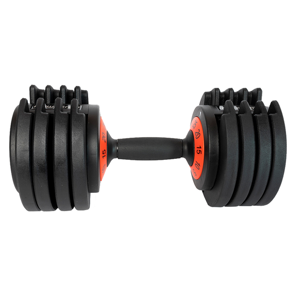 With 5 possible weight settings, this set delivers the same value as 10 individual dumbbells. Each dumbbell adjusts in 5kg increments, allowing you to select the right resistance level for all your exercises. Ideal for bicep curls, leg raises, shoulder presses and more, this adjustable dumbbell set has everything you need for full-body training.