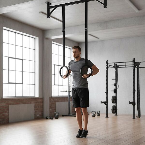 Improve your traditional exercises such as the chin up and pull up when you perform them with these gym hoops, using all your upper body muscles while also working your core! Perfect for everyone from beginners to trained athletes, these Gym Hoops aren't just for gymnasts; the fluid motions of the performance reduce strain on your joints while also improving your posture.
