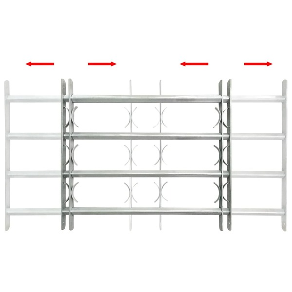 This security grille is manufactured to a high standard in order to increase the security of your house or office. Made of solid galvanised steel, this security grille with 4 crossbars is sturdy and durable, to effectively protect your property from burglary. With the decorative elements, the window grille also adds a touch of style to your house. This security grille can be installed horizontally with its adjustment in width from 500-650 mm to fit a variety of windows. Our window grille is not only a high security option, but also a piece of fine workmanship. Assembly is easy. Delivery also includes mounting accessories.