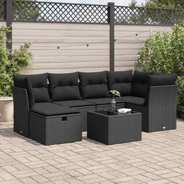 Garden Sofa Set with Cushions Modular Sofa 6 Piece Black Poly Rattan - Comfort & Style