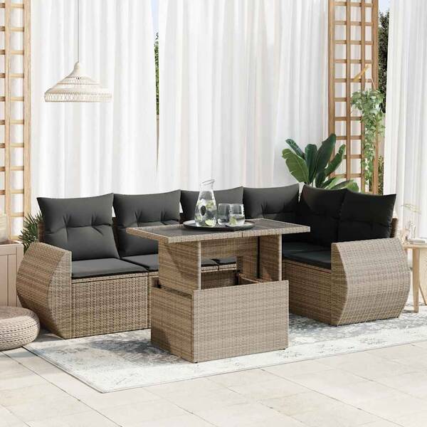 Garden Sofa Set with Cushions Modular Sofa 6 Piece Beige Poly Rattan - Modern Comfort