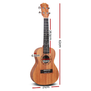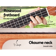 It is cute and handy. Easy to learn and play. And sounds great too. Our Ukulele promises to deliver hours of resounding fun as you sing and play your favourite tunes with wild abandon. Crafted from rich tone woods for a matt natural finish, our Ukulele features meticulous craftsmanship and quality components that others place a premium on. Such as the Mahogany top, back and sides, contoured back, rosewood fretboard, bone nut and saddle, premium nylon strings, decorative soundhole rosette and pre-installed strap pins on both ends of the body. Also included is a bonus carry bag to bring your music where it matters most. Among friends and an appreciative audience. So quit procrastinating and start your musical journey with the mesmerising sounds of the Ukulele. Get yours today.