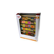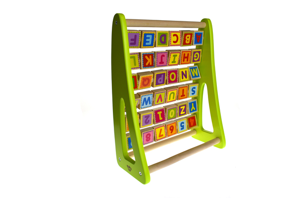 This lovely wooden alphabet frame helps children with letter recognition. Each block come with both the alphabetic letters, numbers, and some illustrations. The spinning blocks encourages children to play, explore and learn. Kids love flipping the blocks around thus promoting fine motor skills. The frame is smooth and well made. Paint used are non- toxic.