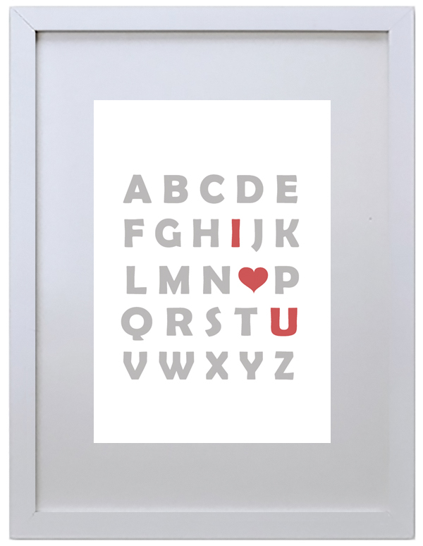 1 x Alphabetic I Love U (Gray-Red, 210 x 297mm, No Frame)