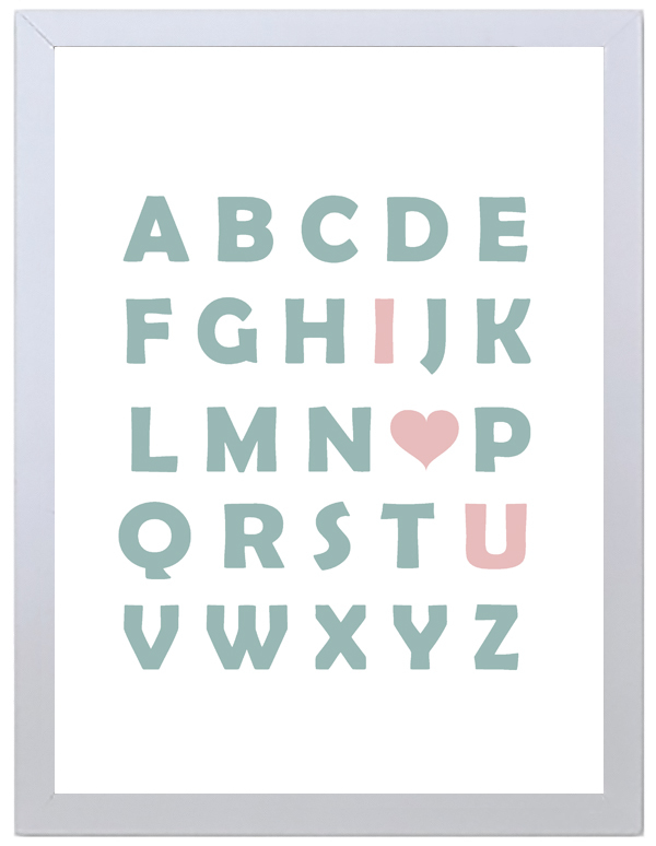 Alphabetic I Love U (Green-Pink, 297 x 420mm, No Frame)