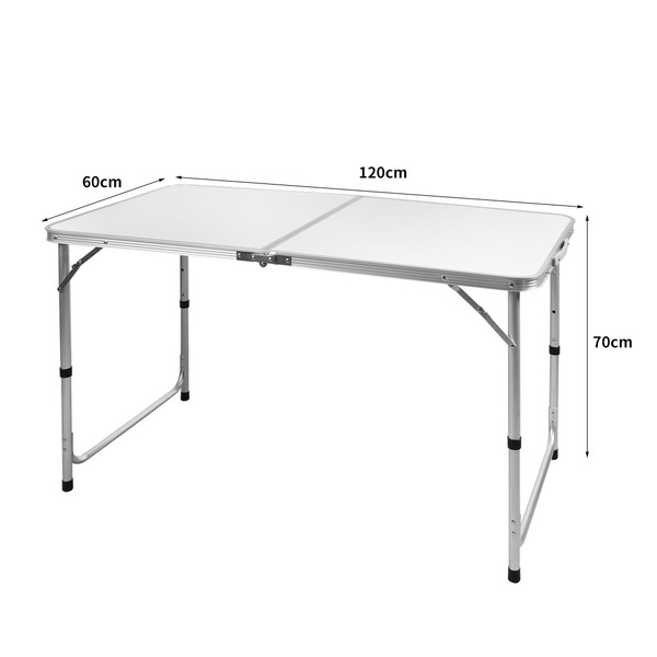Designed to be lightweight and portable, easy to carry, and easy to handle. Easy to adjust its height for convenient use. Fold it away, foldable design for an easy wrap up after use. Built with quality in mind, strong and sturdy aluminium frame. Highly resistant towards rust, water, and chemicals. High strength MDF board can handle up to 30kg of weight. Hinged table support provides enhanced stability. Rounded corners for risk-free use. Pack it up within 90 seconds. Equipped with three height adjustments, choose a height you prefer. Provided with anti-slip bottom to prevent accidental slippage. A perfect product for camping, outdoor family picnic, or for any home use.