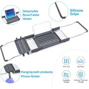 - Perfect For Relaxation: This adjustable bathtub table is crafted with phone slot, reading and iPad holder. The extra small tray and 4 hooks can hold the towel, bath accessories etc. Bring your favorite books, watch your loving movies, and eat your favorite food, treat yourself to the most relaxing bath experience ever and enjoy a home spa treatment in luxury.