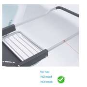 - Premium Material:bathtub tray is made of high-quality rust-proof aluminum alloy and ABS material, strong and durable material, compact design, not easy to rust and mold, easy to clean and install . The non-slip silicone handle prevents the bathtub tray from sliding.