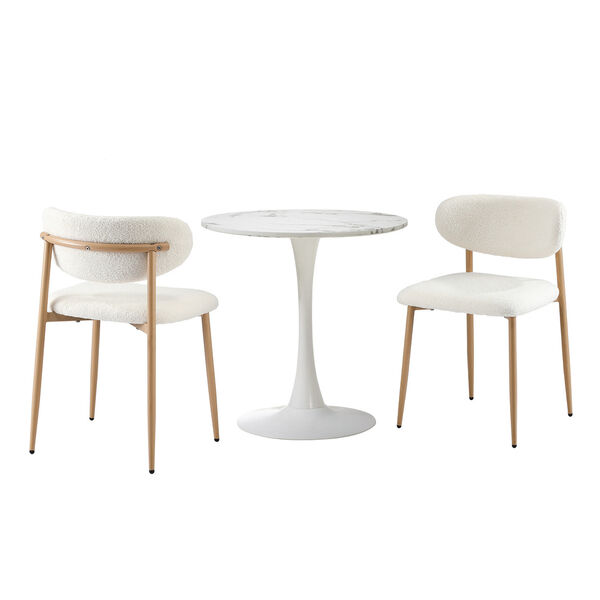60cm Round Dining Table with 2x Dining Chairs Boucle White