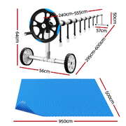 Pool Cover 600 Micron Solar Heat 9.5x5m Blanket w/ 5.55m Roller Blue