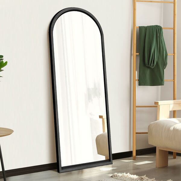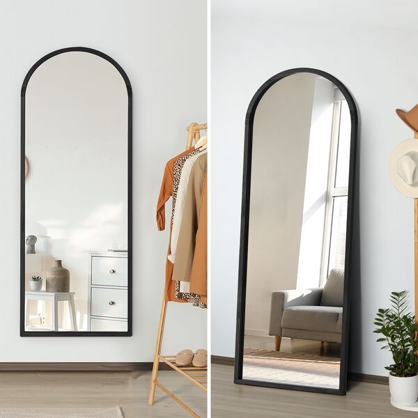 Wooden Full Length Mirror 166x60cm Arched Floor Mirror Black