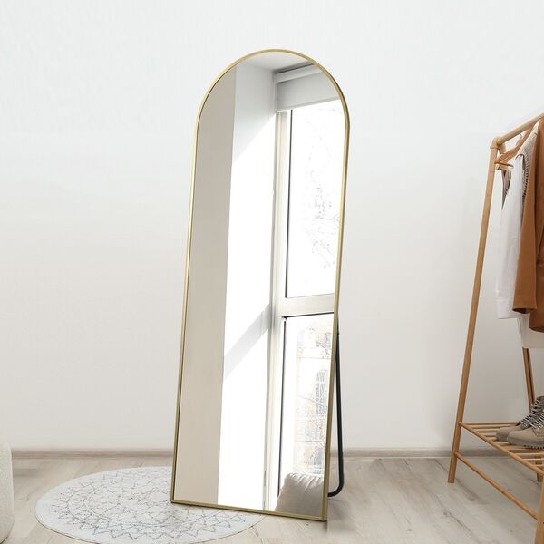 Full Length Mirror Arched Free Standing Gold 166x60cm