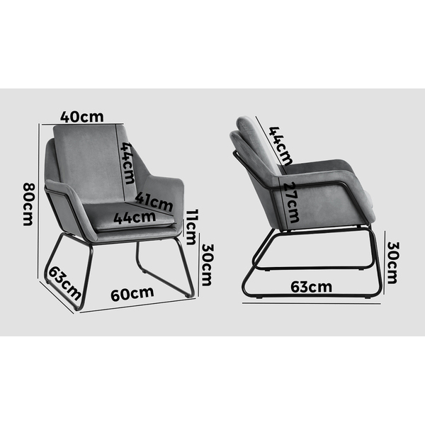 Armchair Velvet Accent Chairs Tub Chair Sofa Lounge Upholstered Grey