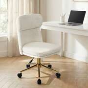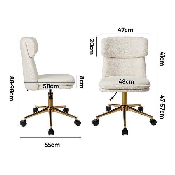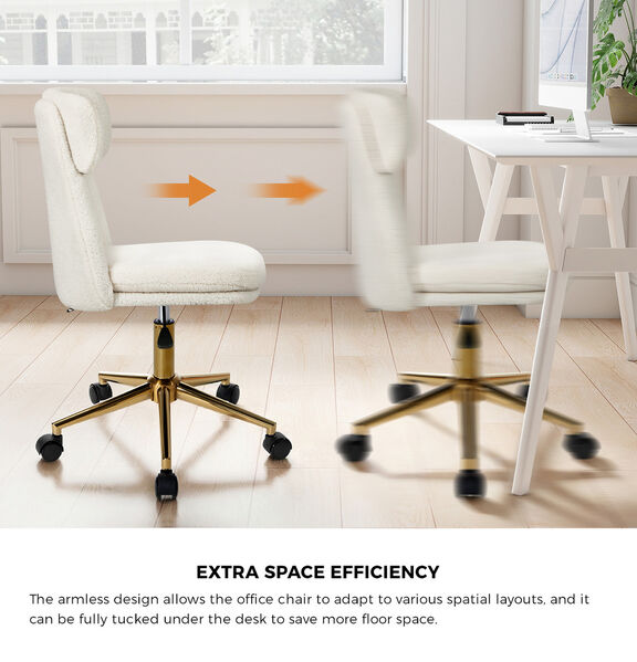 Upholstered in cosy Sherpa fabric for both the seat and backrest, the office chair exudes supreme comfort with style. Plus, the armless design allows the office chair to adapt to various spatial layouts, and it can be fully tucked under the desk to save more floor space.