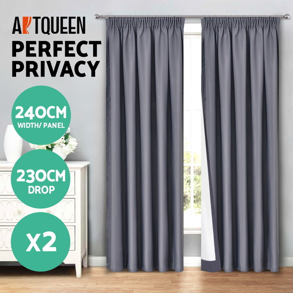 Art Queen 2 Pencil Pleat 240x230cm Blockout Curtains - Dark Grey