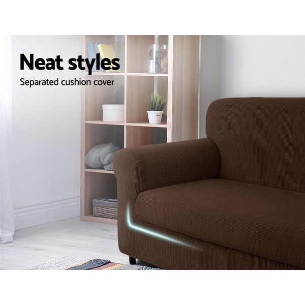 2-piece Sofa Cover Elastic Stretch Couch Covers Protector 3 Steater Coffee