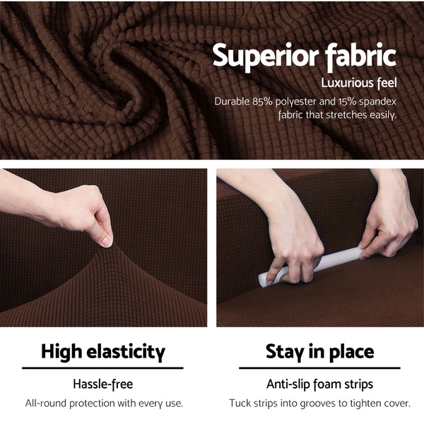 Sofa looking a tad tired? Thinking of getting a new one? Well, save yourself some money and get yourself an Artiss Sofa Cover instead. Just wrap it over your existing sofa and the old beauty is as good as new. There is even a separated cushion cover for sofas with detachable seat cushions to ensure neat and perfect-fitting coverage all around. Made of a durable mix of 85% polyester and 15% spandex, the sofa cover fabric is very stretchable and easy to manipulate. Its high elasticity helps to provide a good and taut fit without any hassles. If needed, the provided anti-slip foam strips can assist in tightening the cover further. Better still, the sofa cover is designed to suit any sofa with detachable seat cushions and is machine washable for easy cleaning