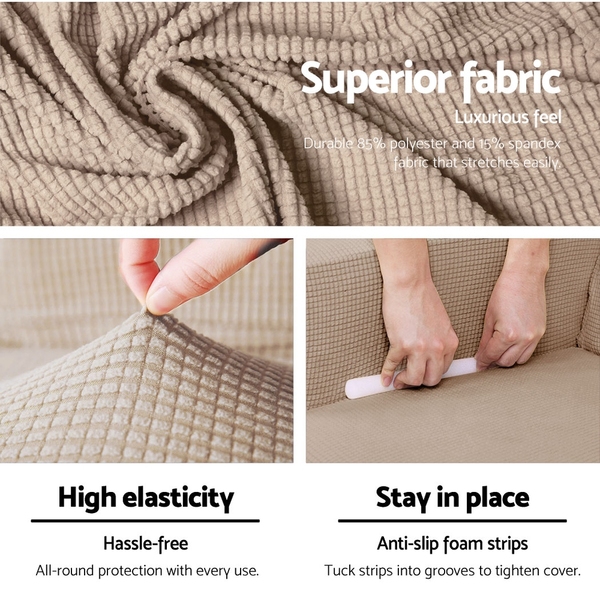 Sofa looking a tad tired? Thinking of getting a new one? Well, save yourself some money and get yourself an Artiss Sofa Cover instead. Just wrap it over your existing sofa and the old beauty is as good as new. There is even a separated cushion cover for sofas with detachable seat cushions to ensure neat and perfect-fitting coverage all around. Made of a durable mix of 85% polyester and 15% spandex, the sofa cover fabric is very stretchable and easy to manipulate. Its high elasticity helps to provide a good and taut fit without any hassles. If needed, the provided anti-slip foam strips can assist in tightening the cover further. Better still, the sofa cover is designed to suit any sofa with detachable seat cushions and is machine washable for easy cleaning