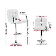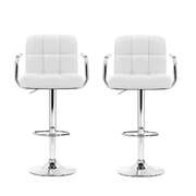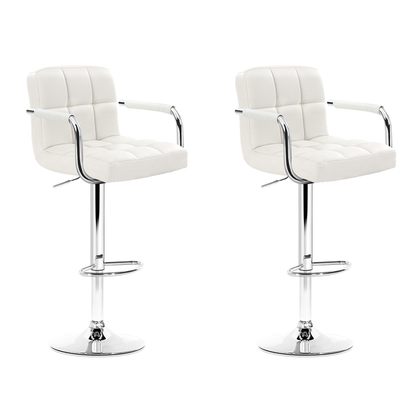 2x Bar Stools Leather Gas Lift w/Armrest White