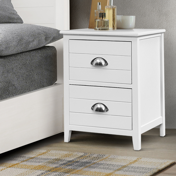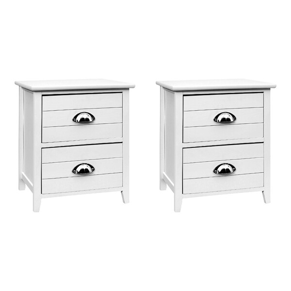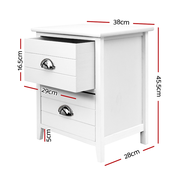 2x Bedside Table Nightstands 2 Drawers Storage Cabinet Bedroom Side White