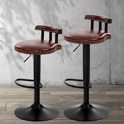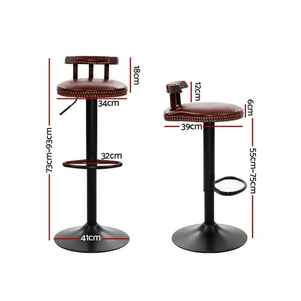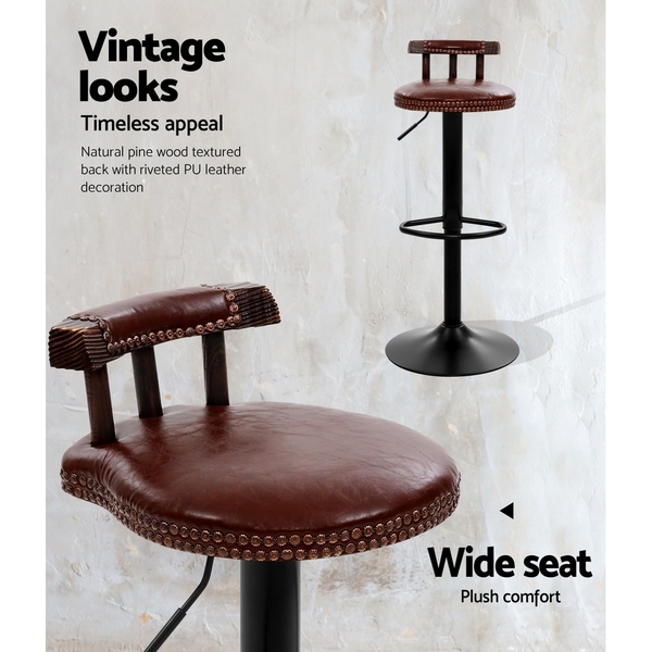 2x Kitchen Bar Stools Vintage Bar Stool Chairs Swivel Gas Lift Leather Brown