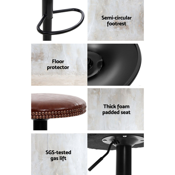 Chill out and relax with our Artiss Pierre Bar Stool. With its classic design and vintage good looks, the bar stool is must for every discerning home-proud person. Upholstered in faux leather, the bar stool also features an extra thick foam padding for ultimate comfort. The contoured wooden backrest also adds a touch of class to its inherent charisma. The semi-circular footrest ensures relaxed sitting while the omni-directional seat makes for easy turn to any facing. Better still, the height can be easily adjusted with the SGS-tested gas lift and the large base ensures stability at all times. Not least, a floor protector under the base helps to keep your pristine floor scratch-free at all times.