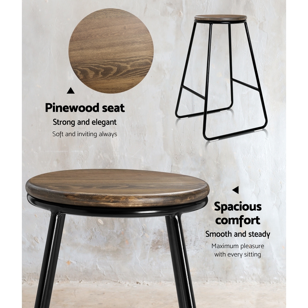 4x Bar Stools Rustic Vintage Kitchen Stools Chairs Metal Pine Wood Seat 66cm