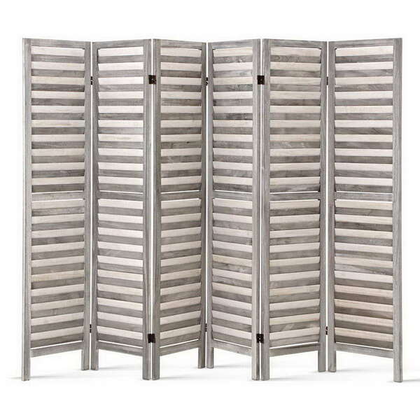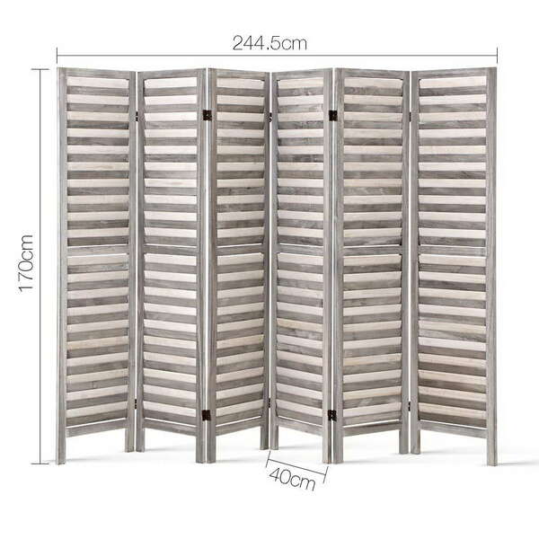 6 Panel Room Divider Privacy Screen Foldable Wood Stand Grey