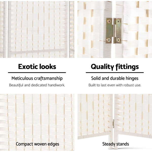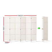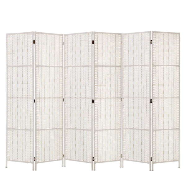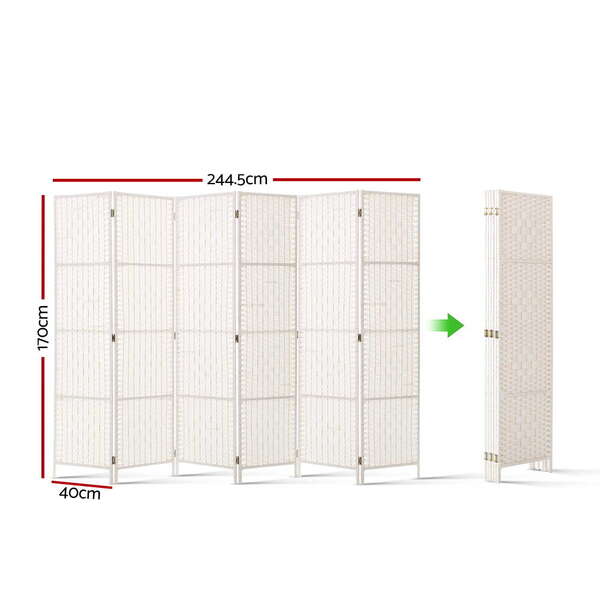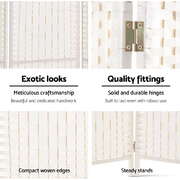 6 Panel Room Divider Privacy Screen Rattan Timber Fold Woven Stand White