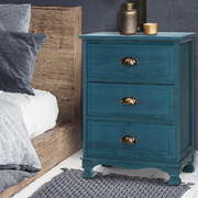 Bedside Table 3 Drawers Vintage - THYME Blue