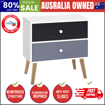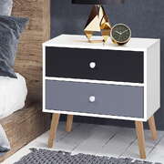 A design that is Scandinavian-inspired and yet reminiscent of decades-old influences, our Bedside Table offers full functionality with stylish cues. Made from quality particle board with smooth paper veneer finish, the two-tone bedside table adds some chic appeal to your decor and is the perfect choice to grace any bedroom, study or any other space in a discerning home or establishment. The splayed legs add a unique stance to this very able beside table that also comes with classic knob handles and smooth anti-rust metal drawer slides for hassle-free use. Not least, ample storage space is found with the two drawers for all your bedside or personal essentials. For everything that needs to be close at hand anytime, this bedside table is the convenient one to facilitate your requests.