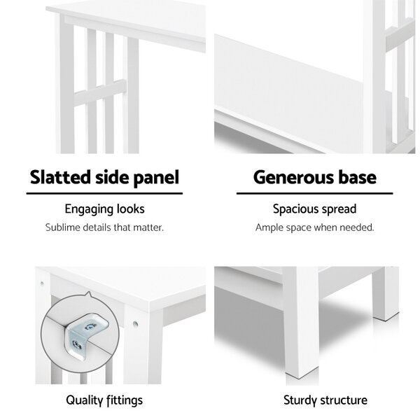 Every home that considers itself a stylish and contemporary example should have our beautiful Artiss Console Table lining its doorway or hallway. Crafted from eco-friendly MDF board, the console table features a timeless design that is well proportioned and durable in every aspect. Simple as it may look, the console table features slatted side panels for both style and strength. A large bottom shelf allows you to display a variety of items to enhance your home décor. Not least, the NC lacquer paint finish is absolutely flawless, non-toxic, moisture-resistant and smooth to the touch. Make an eye-pleasing entrance for your guests or even for yourself with our console table.