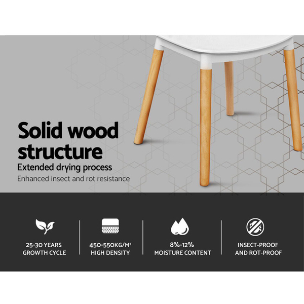 Simple and elegantly styled. Our Artiss Dining Chair is a firm statement in sophistication that stands proud in your dining room. With its simple lines and timeless appeal, the dining chair will stand the test of time and trends for any home décor. Better still, the chair comes with enhanced hardware fixings combined with an improved matt finish PP plastic seat and strong beech wood legs to make it truly longlasting and reliable, even with robust use. Your floor is also aptly protected with anti-slip feet attached to each leg of the chair. Turn your dining room into a beautiful setting with our dining chair. And if you want a change of scenery, simply stack the chairs together for easy storage.