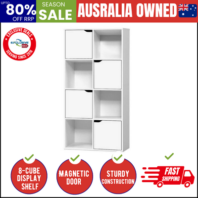 Modern and sleek. Our Cube Display Shelf provides unique 2-in-1 storage and has the best of everything you want in storage options. With eight cubed storage spaces �C four cabinets and four open shelves �C the display shelf has ample space to let you showcase all your favourite items both openly and in closed storage. The design is both functional and attractive with the cabinet doors having cut-out handles and magnetic door catches for a sleek appearance. And the neutral white tone and clean lines means the display shelf will effortlessly blend in with any d��cor. Made from quality particle board with paper veneer finish, this space-saving display shelf is durably constructed and has every feature that makes it a popular choice for the discerning home stylist.
