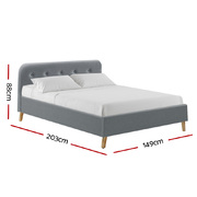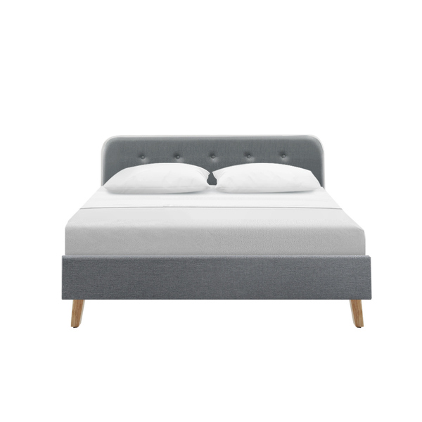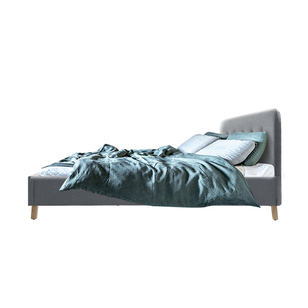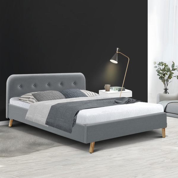 Double Full Size Bed Frame Base Mattress Fabric Wooden Grey POLA