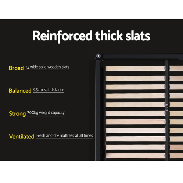 Within the frame, a highly flexible wooden arched slat base allows the bed to flex properly so there are less disturbances in the night if your partner moves in their sleep. An adjustable centre support beam keeps the bed steady and provides additional central support to the structure. Not least, the sturdy steel frame is also reinforced with steel bars and held together by heavy duty metal connectors so that you know this bed will support you whilst throughout all your dreams!