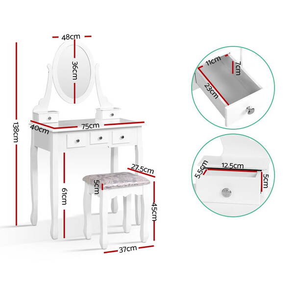 Dressing table overall dimensions: 75cm x 40cm x 138cm