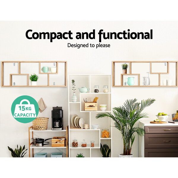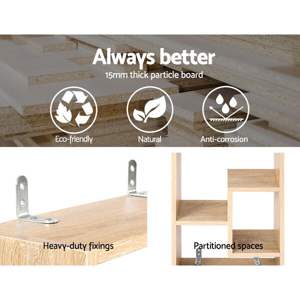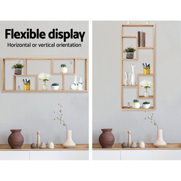 Our Artiss Floating Display Shelf is designed for multiple uses. From a freestanding floor shelf to a wall-mounted floating option, or in horizontal or vertical orientations, the display shelf looks stylish and is practical in every way. The design is simple and timeless and will easily match any décor. Plus, the shelf comes with five partitioned spaces in varying shapes and sizes to fit an assortment of displays to reflect your lifestyle. Use it as a focus feature or as a complementary piece. Best of all, the 15mm thick particle board display shelf with smooth melamine finish is sturdy and durable and easy to maintain.