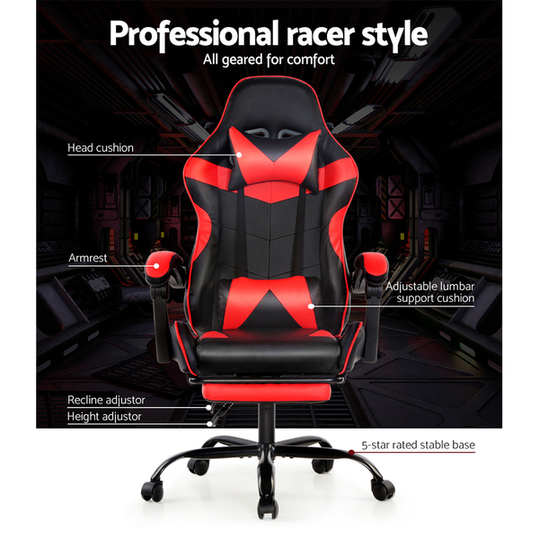 Gaming Office Chairs Computer Seating Racing Recliner Footrest Black Red