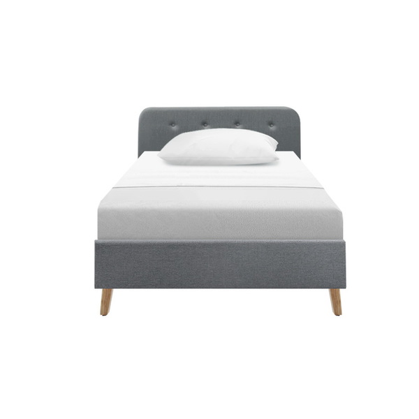 King Single Size Bed Frame Base Mattress Fabric Wooden Grey POLA