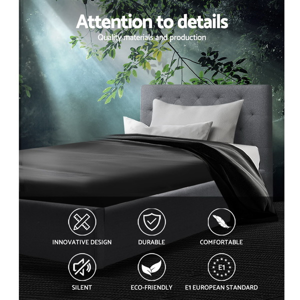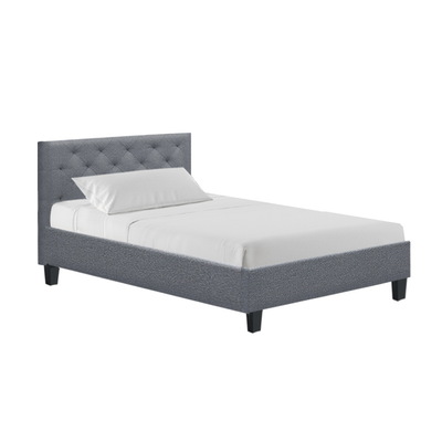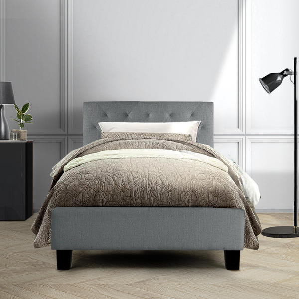 King Single Size Bed Frame Base Mattress Platform Fabric Wooden Grey VAN