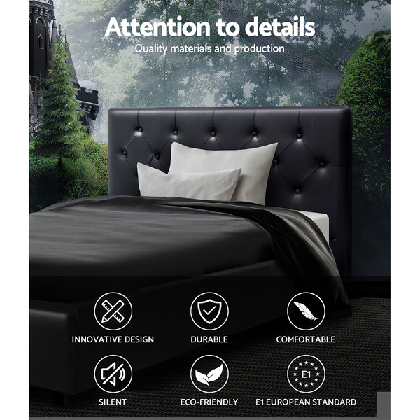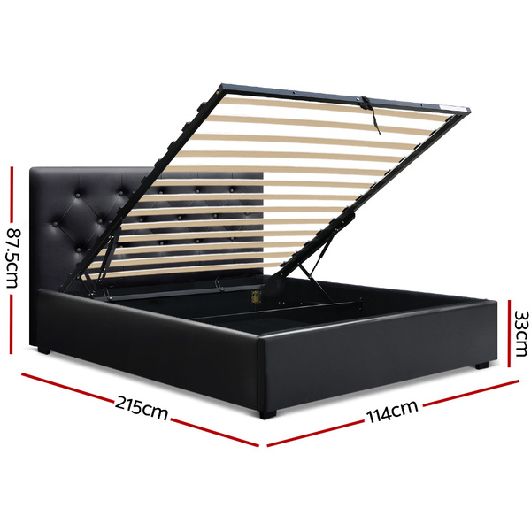 King Single Size Gas Lift Bed Frame Base Mattress Platform Leather Wooden Black WARE