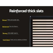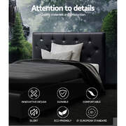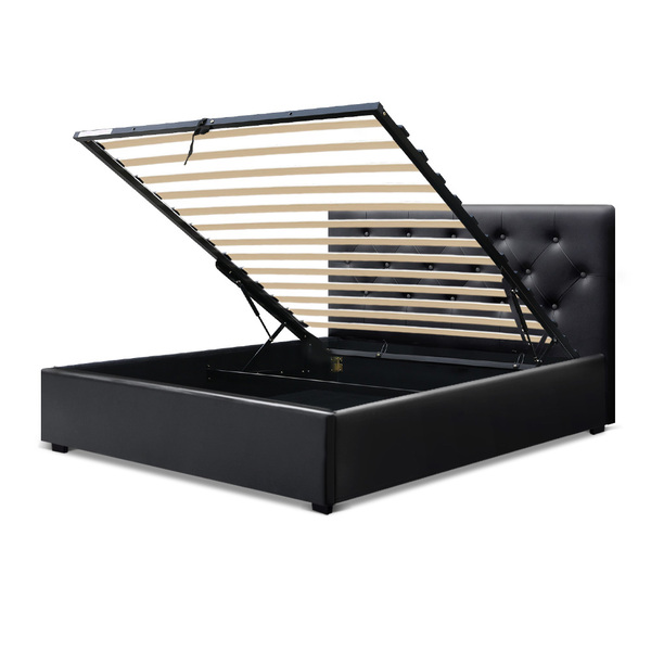 From the outside, our contemporary Artiss Ware Gas Lift Bed Frame looks absolutely plush. The premium PVC leather tufted headboard and sides all exudes fine craftsmanship. But there is more to this luxurious bed frame than meets the eye. Lift up the frame and you will find acres of storage space under the wooden arched slat base. The gas lift system and hand strap enables you to effortlessly lift the bed to store all your seasonal beddings and linen such as extra quilts, pillows and comforters and more. It certainly helps to free up existing space in your storage cabinets for other household things. The wooden arched slat base is also designed to flex appropriately so that it can better distribute the weight exerted on it. As such, it helps to minimize movement disturbances created when two persons are sleeping on the bed. Overall, the bed frame is well-built with reinforced steel bars within its sturdy steel frame. Heavy-duty metal connectors keeps the frame sturdy. Enjoy your wonderful sleep in more ways than one with our innovative Artiss Ware Gas Lift Bed Frame.