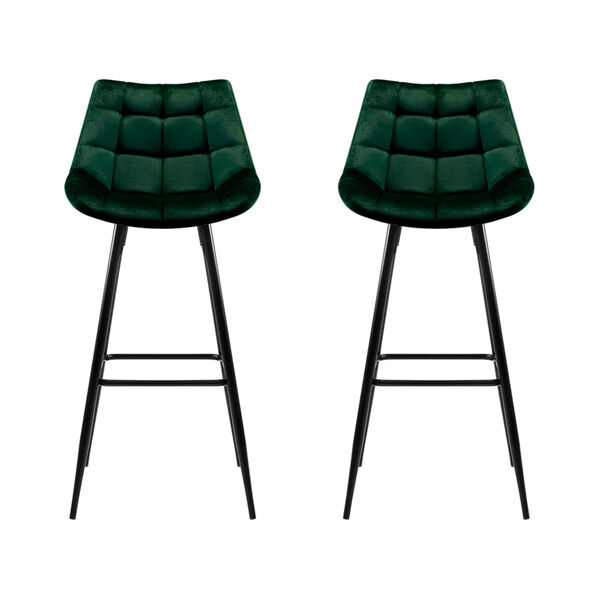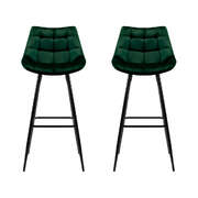 2x Bar Stools Velvet Chairs Green