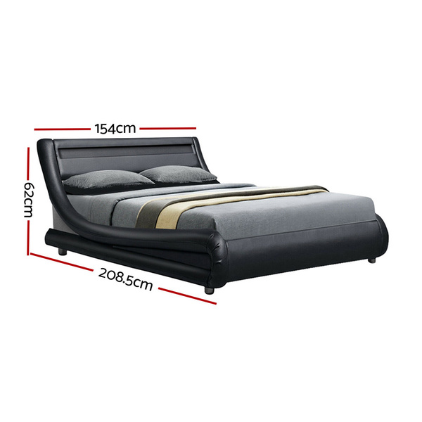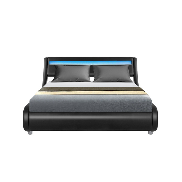 LED Bed Frame Double Full Size Base Mattress Platform Black Leather ALEX