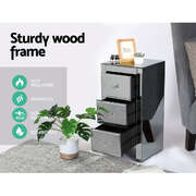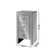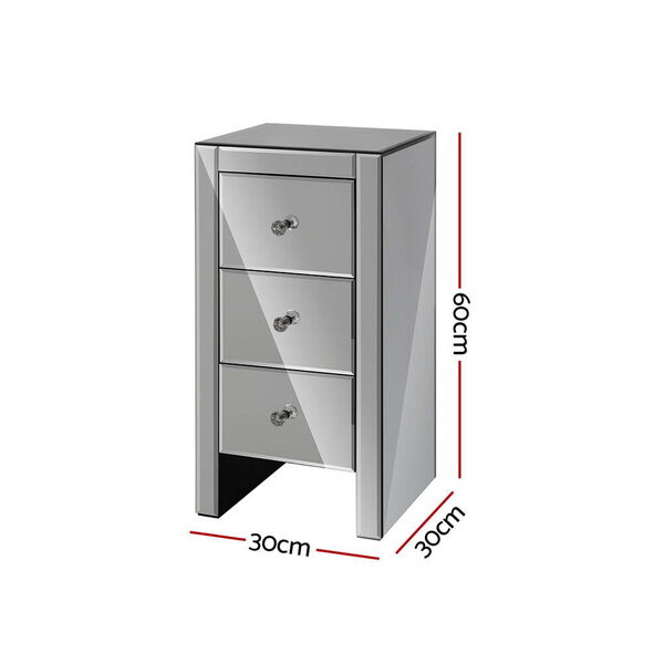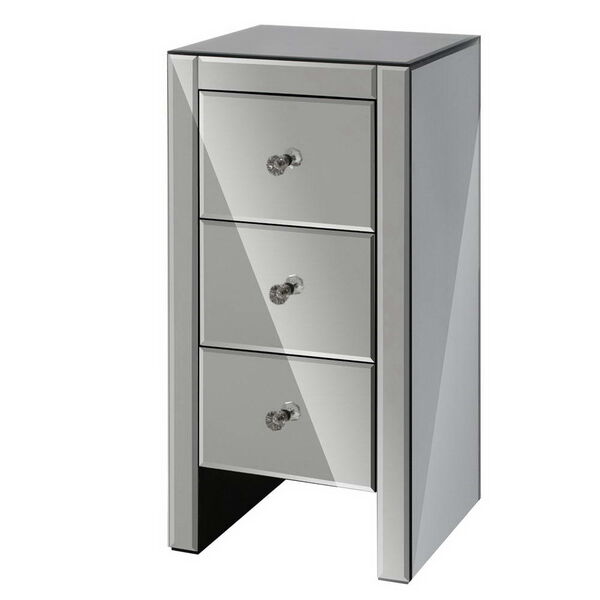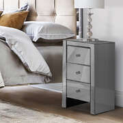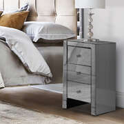 Bedside Table 3 Drawers Mirrored Glass - QUENN Grey