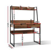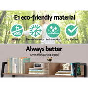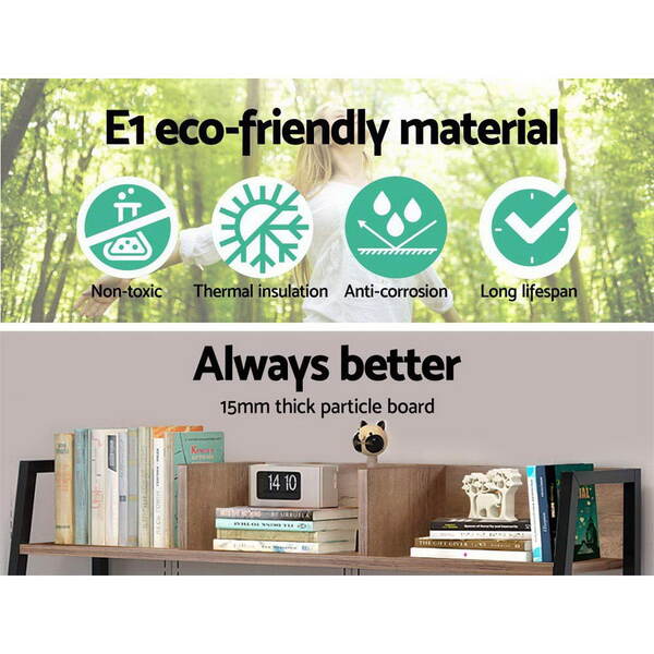 Drawing its inspiration from industrial design cues, our Artiss Turis Computer Desk is a work of meticulous craftsmanship in form and function. It is designed to enhance your work efficiency and yet add a stylish touch to your home or office décor. Made from 15mm thick eco-friendly E1 particle board with beautiful natural dark woodgrain finish the desk is durable and easy to maintain for longlasting use. The black power-coated metal frame also ensures reliable load-carrying stability for robust use. The desk offers plenty of space for work and storage from top to bottom. The partitioned shelves up top, two drawers with sleek cut-out handles and one large under-desk shelf allows you store all your work essentials, files, books, binders and stationery, while the wide tabletop easily accommodates your laptop and other working peripherals. All in, the Artiss Turis Computer Desk is your inspired workspace for years to come.