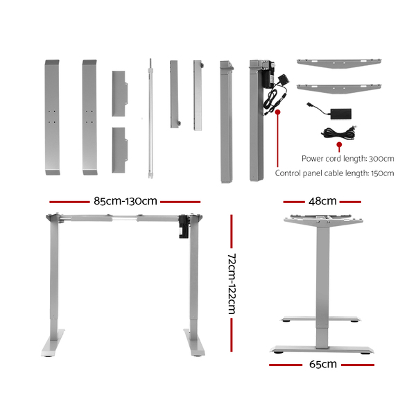 Do not let a standard desk restrict your preferred working posture. You can now have a choice of working while sitting or standing with our Artiss Roskos I Motorised Adjustable Desk. Using the smooth stepless motorised height and length adjustment, you can adjust the frame spatial measurements to suit your working preference. It is most compatible with desktops ranging from 100cm to 160cm in length and 50cm to 80cm in width. With the frame, you can choose to sit when necessary or stand whenever you need to stretch your muscles or recharge your energy level when lethargy sets in from excessive sitting. An easy-to-use control panel enables you to all your adjustments hassle-free. Other notable features include a curved edge desk top, ultra-quiet operation, low energy consumption, high quality powder-coated frame and components and height-adjustable rubber footings for extra stability. Work smart and stay healthy at work with the motorised adjustable desk.
