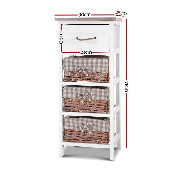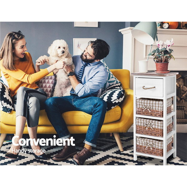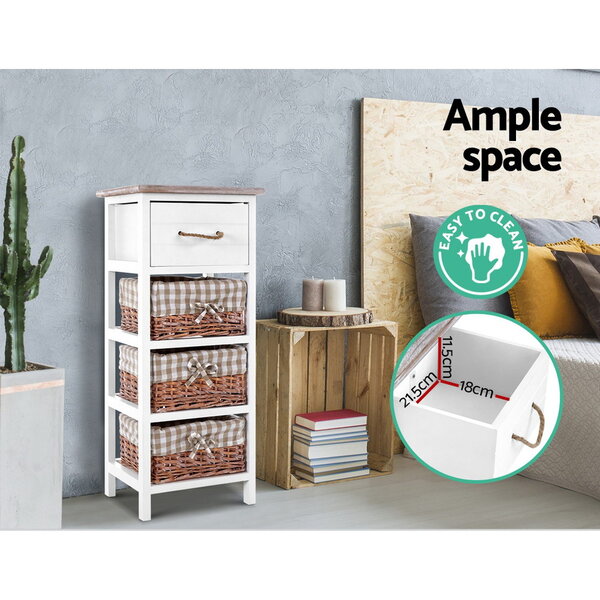 A rustic and cottage feel with practical aesthetics. That is what our Artiss Blyton Bedside Table stands for. With a country-style design and three delightful wicker baskets as added storage, the bedside table is charming and appealing in every way. Made of Paulownia wood, the frame is strong and sturdy and the MDF drawer offers deep storage space with smooth movements for a hassle-free use. The wicker baskets have removable linen covers that can be easily cleaned. Perfect for use in any room setting, the Blyton bedside table matches any décor with its white and pleasant hues.